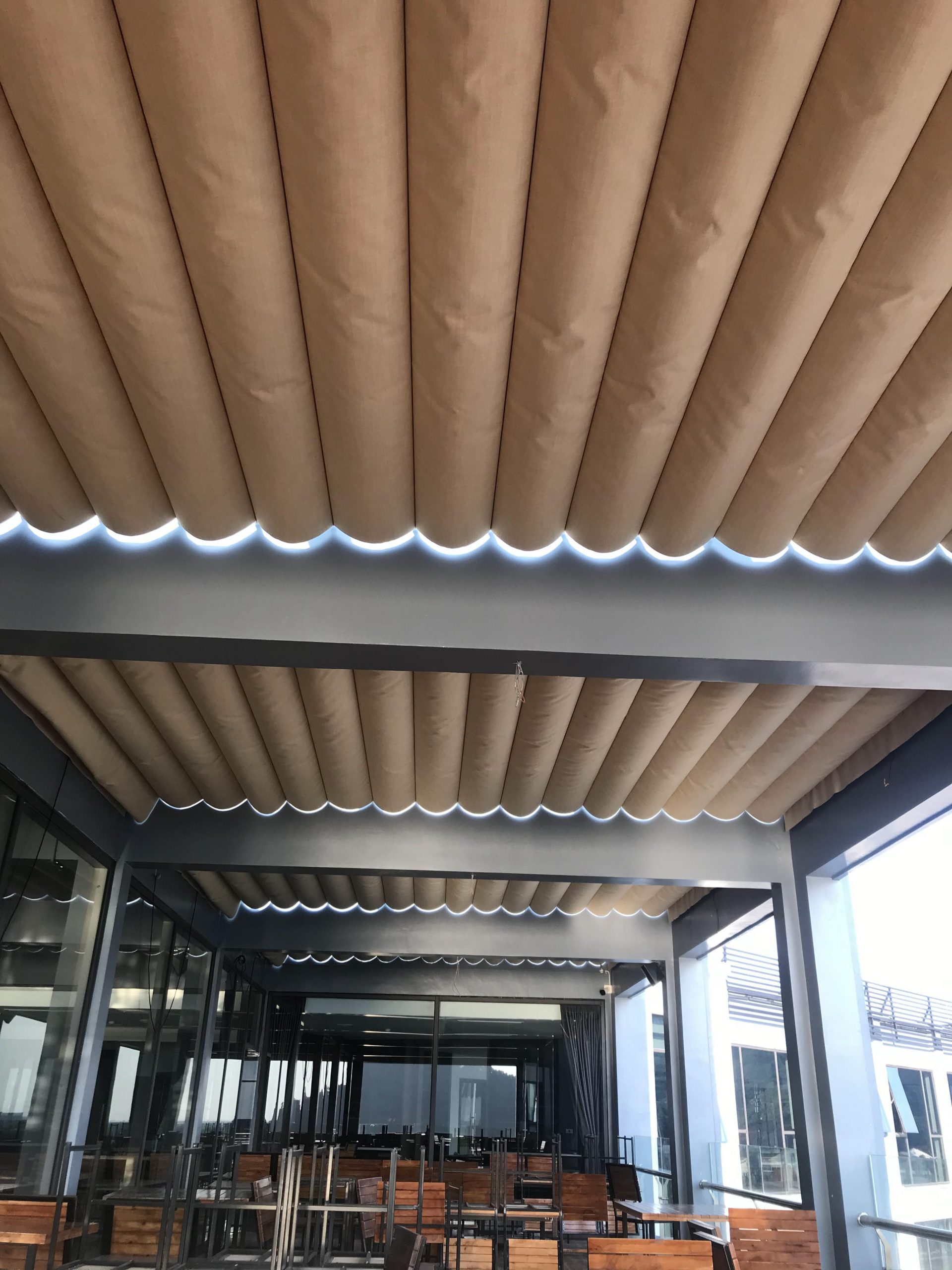 - Tự động đóng trường hợp có gió lớn : hệ thống mái kính cũng có thể có bộ cảm ứng phân biệt sức gió, khi gió lớn hệ thống cũng tự đóng mái kính lại